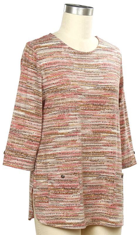 • Description:3/4 Slv Print Stripe Pocket Top
